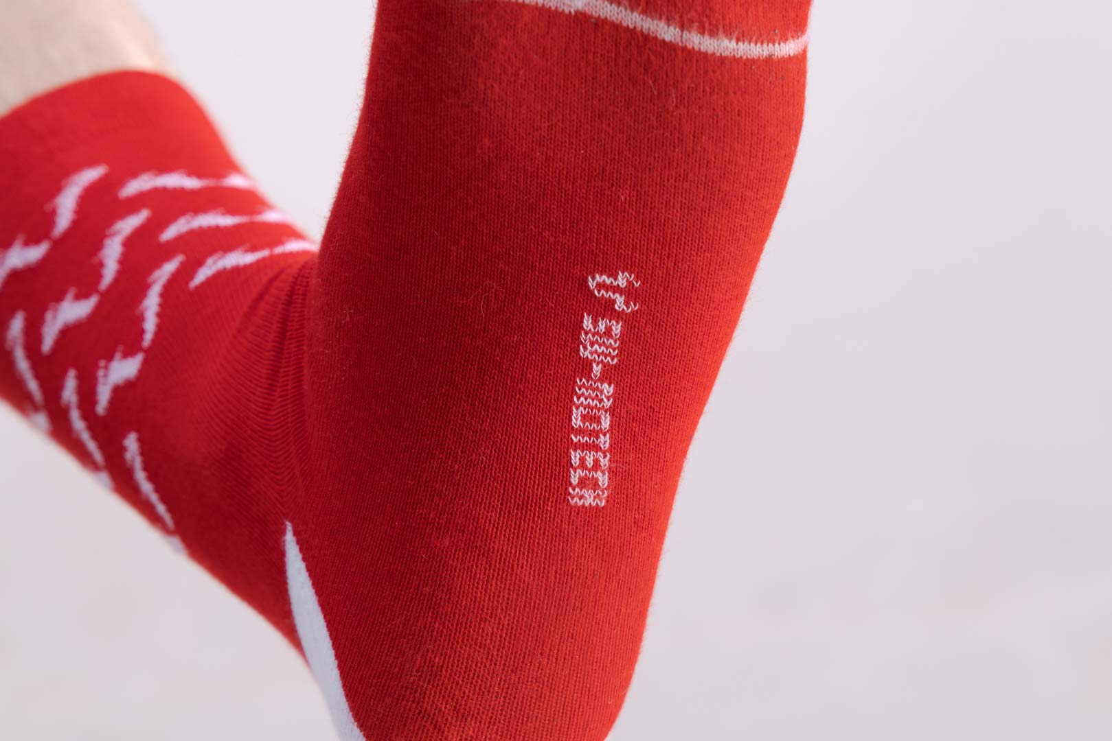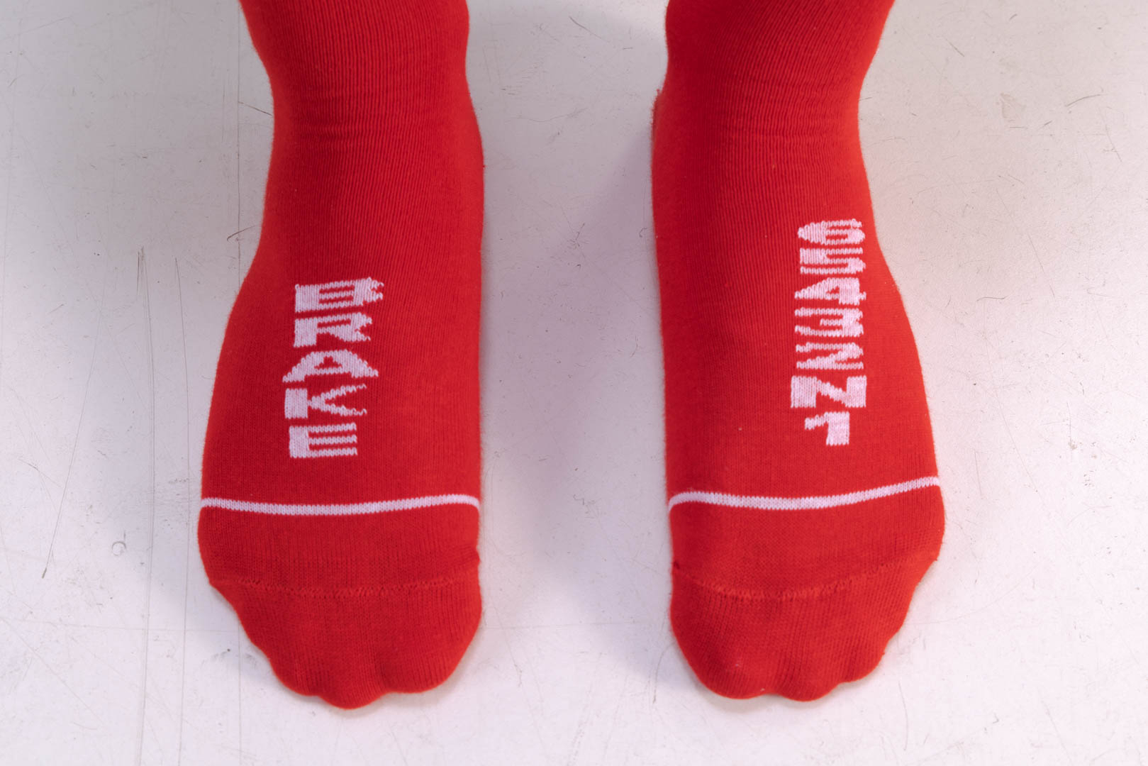 Auf dem linken Socken findest du die Ganganzeige und rechts den Schriftzug 'BRAKE' – so weißt du immer, wo welcher Socken hingehört!