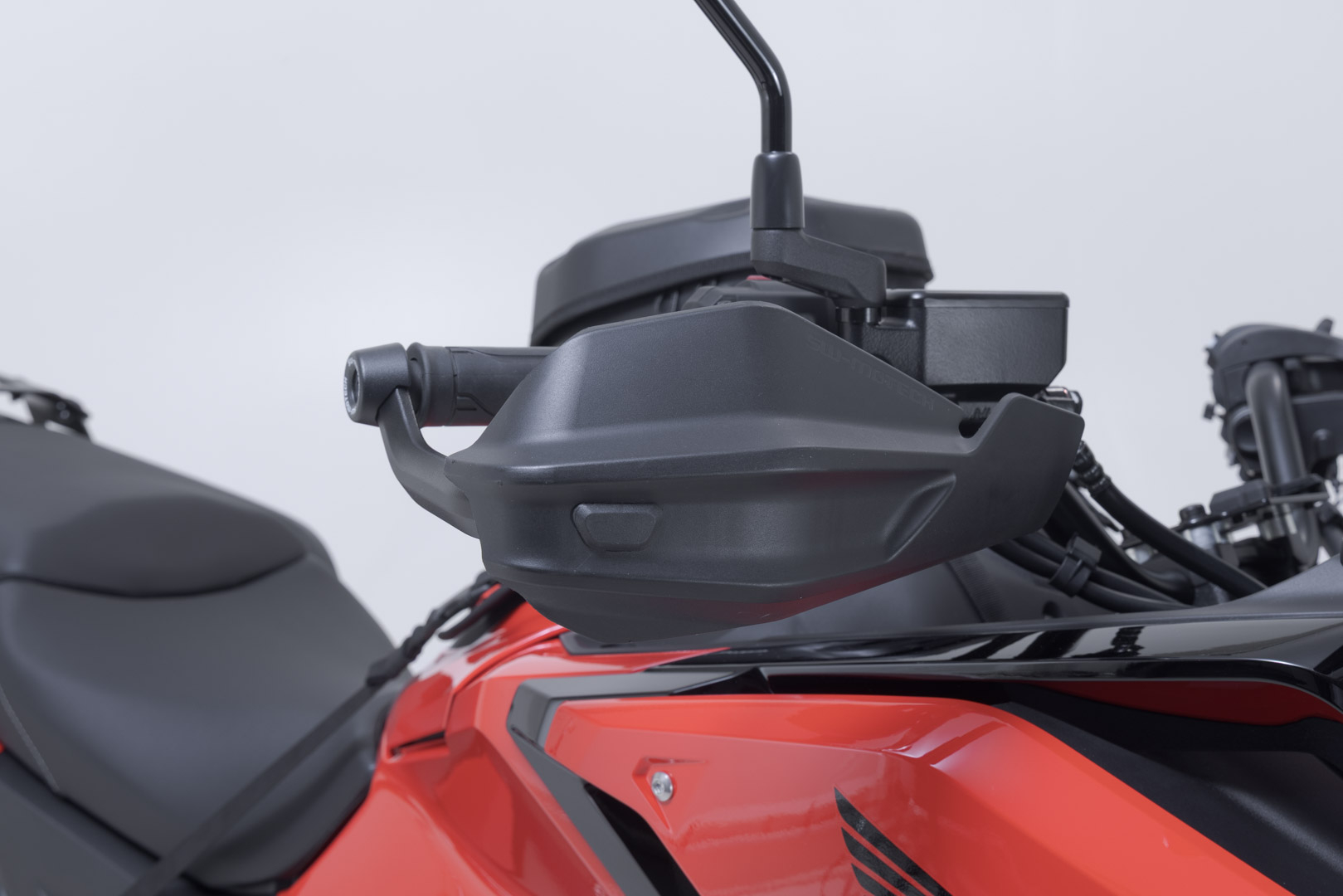 Dank der geschlossenen Form der Adventure Handschalen werden Lenker und Hände auch auf den Seiten abgedeckt. Für noch mehr Schutz kann das separat erhältliche Sturzpad-Set an den Handprotektoren befestigt werden. Für mehr Witterungsschutz sorgt das Erweiterungs-Set, mit dem die Protektionsfläche der Adventure Handschalen vergrößert wird.